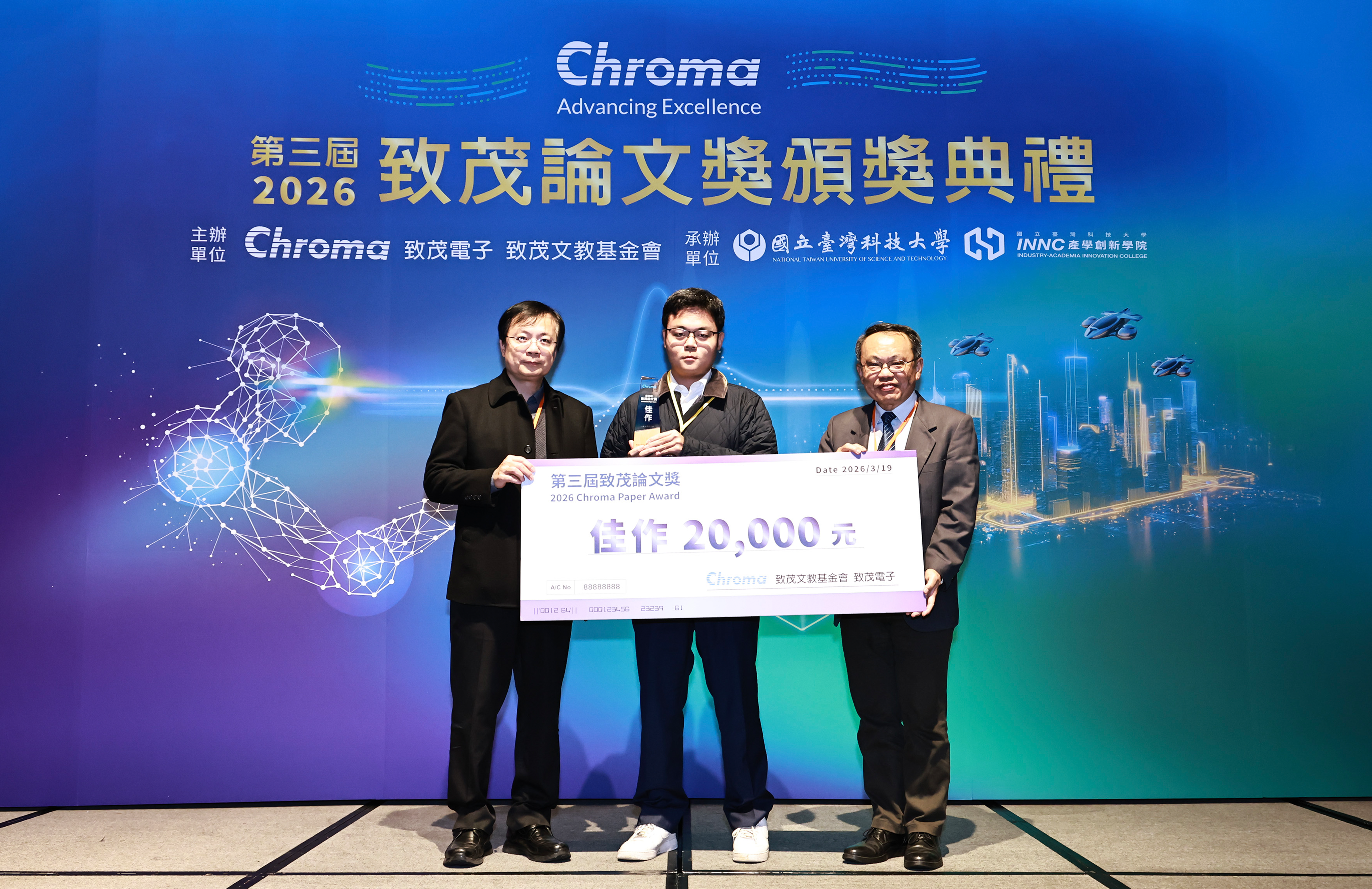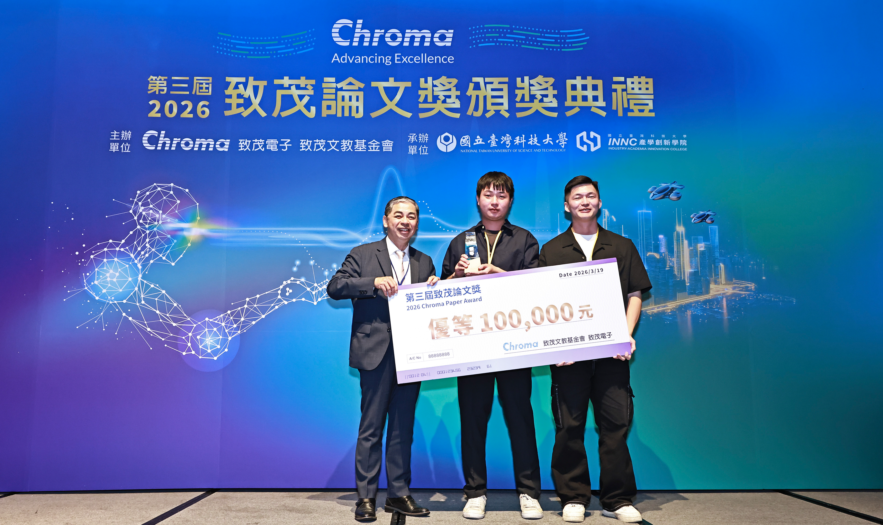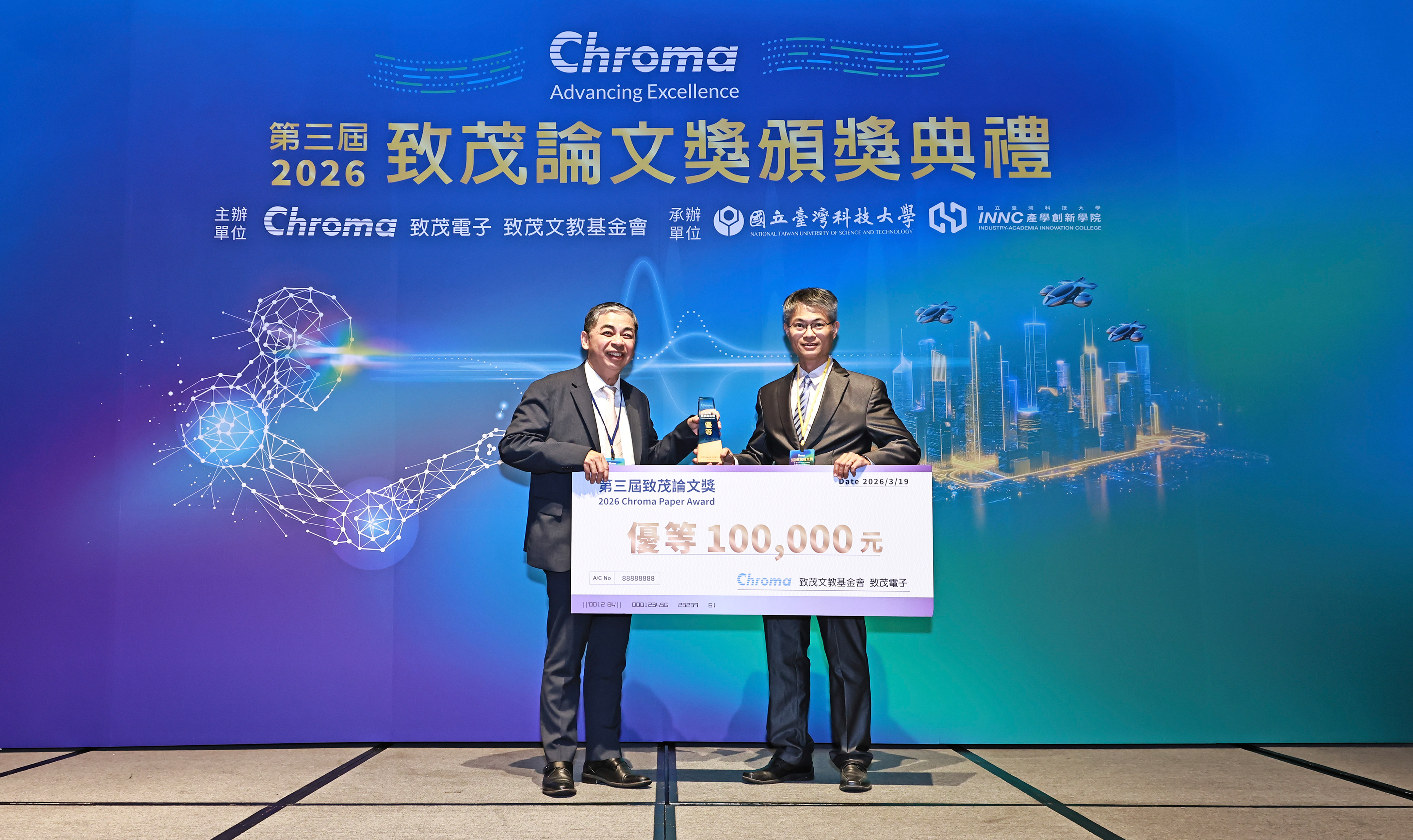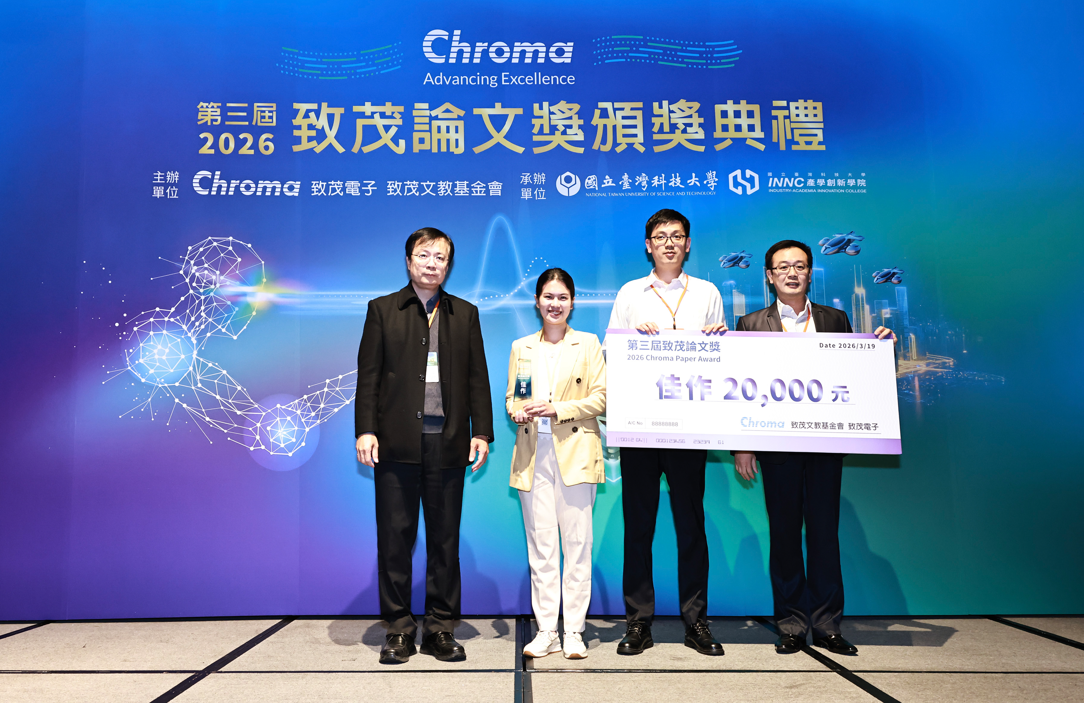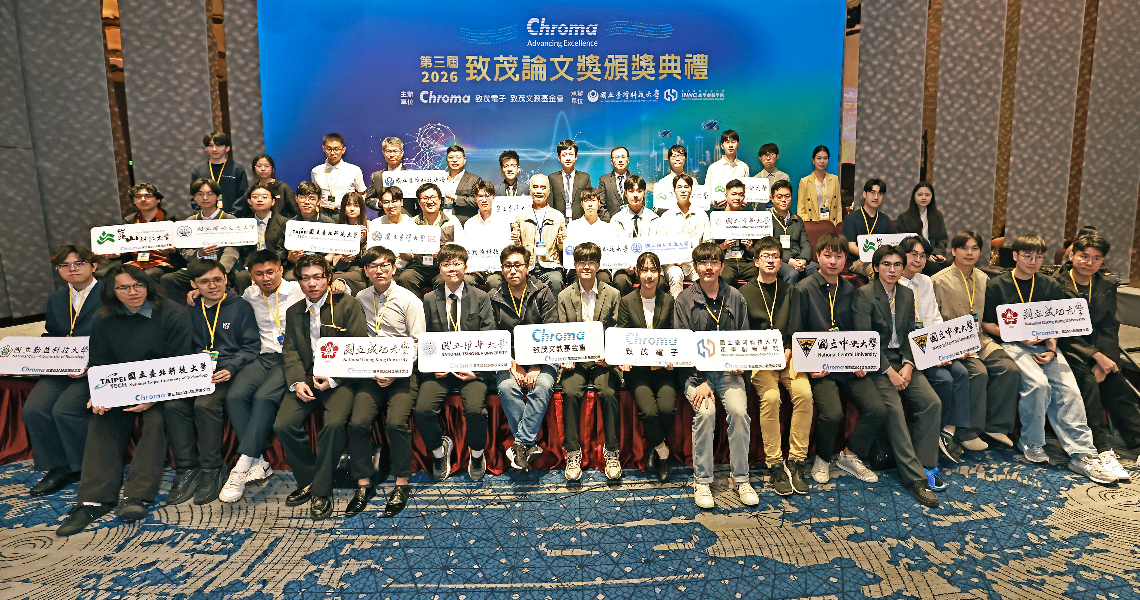 致茂電子(Chroma ATE Inc.)於3月19日舉辦第三屆「致茂論文獎」頒獎典禮,活動圓滿落幕。本屆論文獎持續深化產學合作,並與國立臺灣科技大學合作推動,透過建立與產業需求緊密連結的交流平台,促進學術研究與實務應用接軌,進一步推動科技創新與關鍵人才培育。