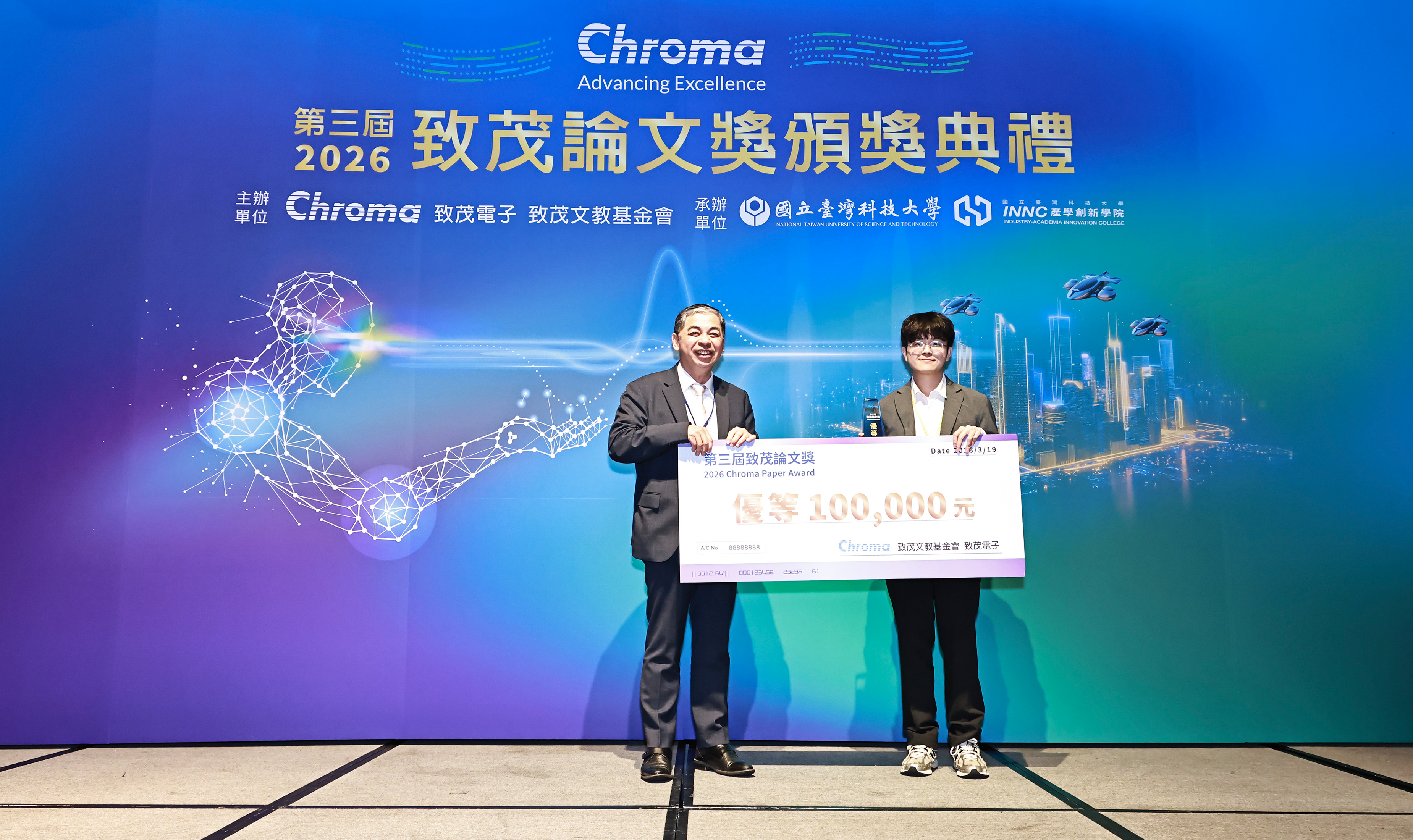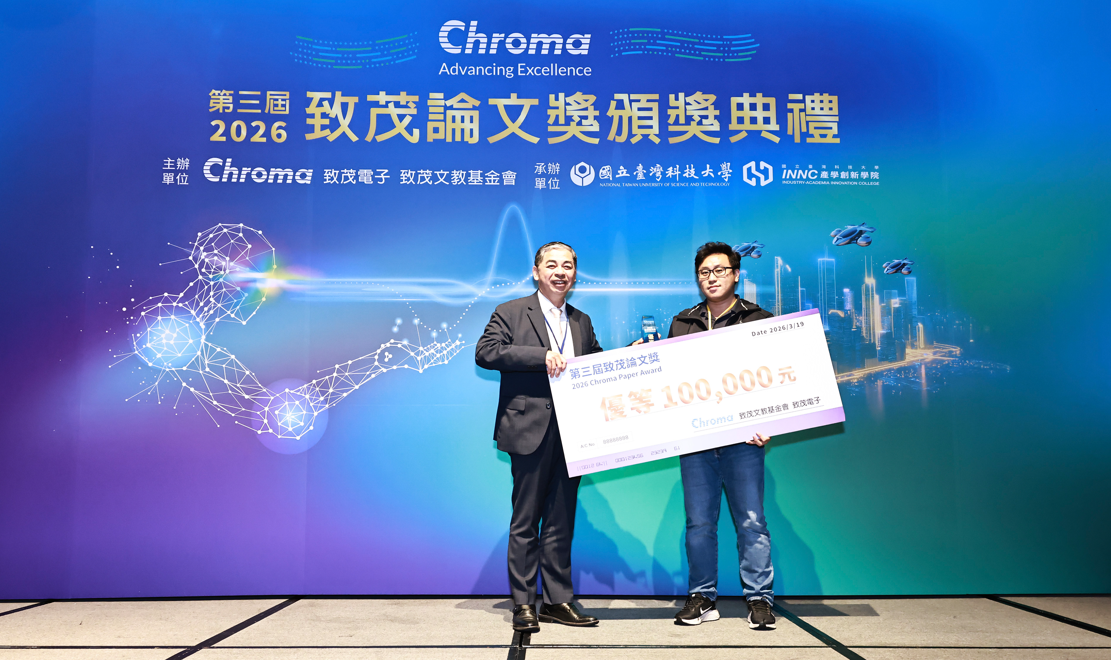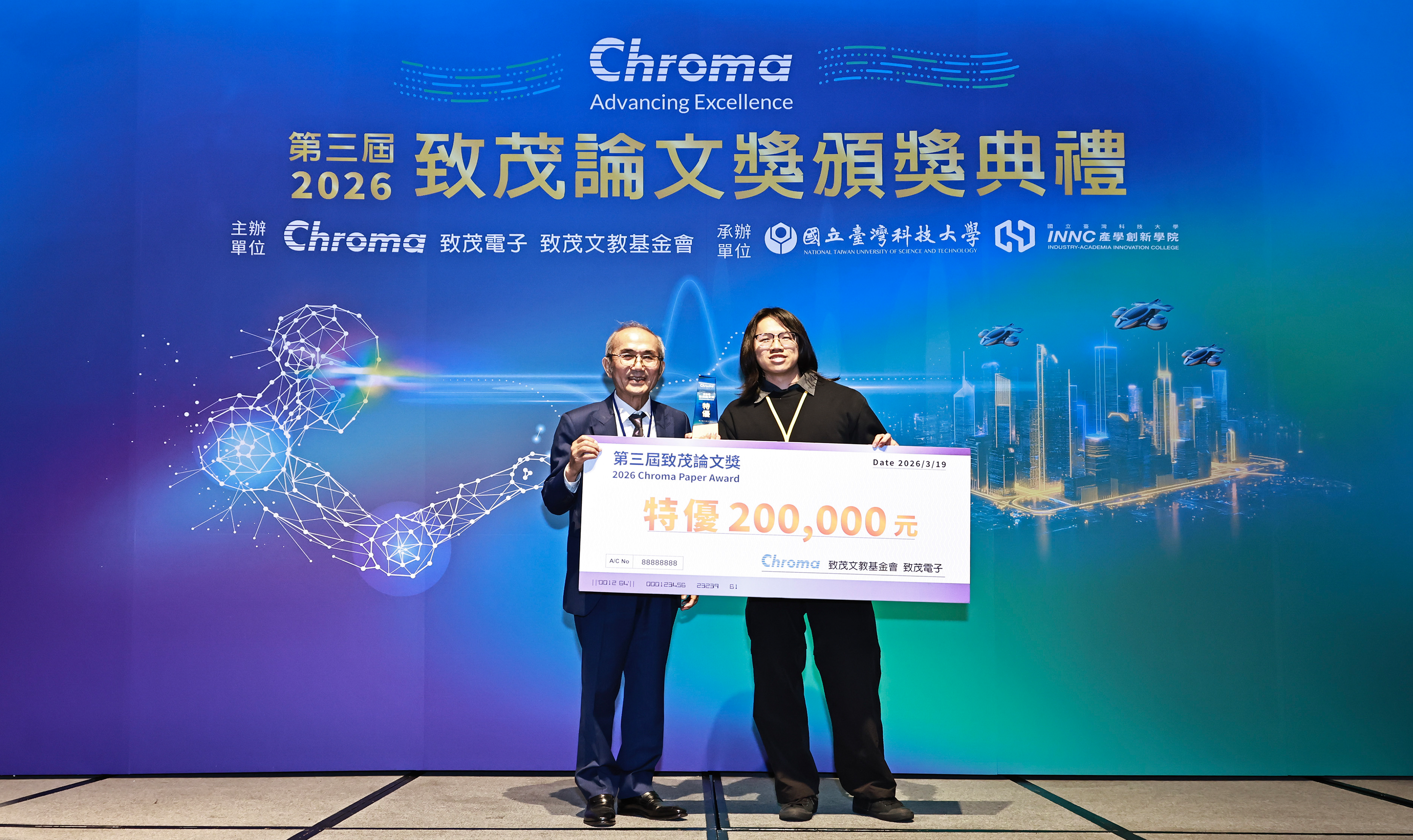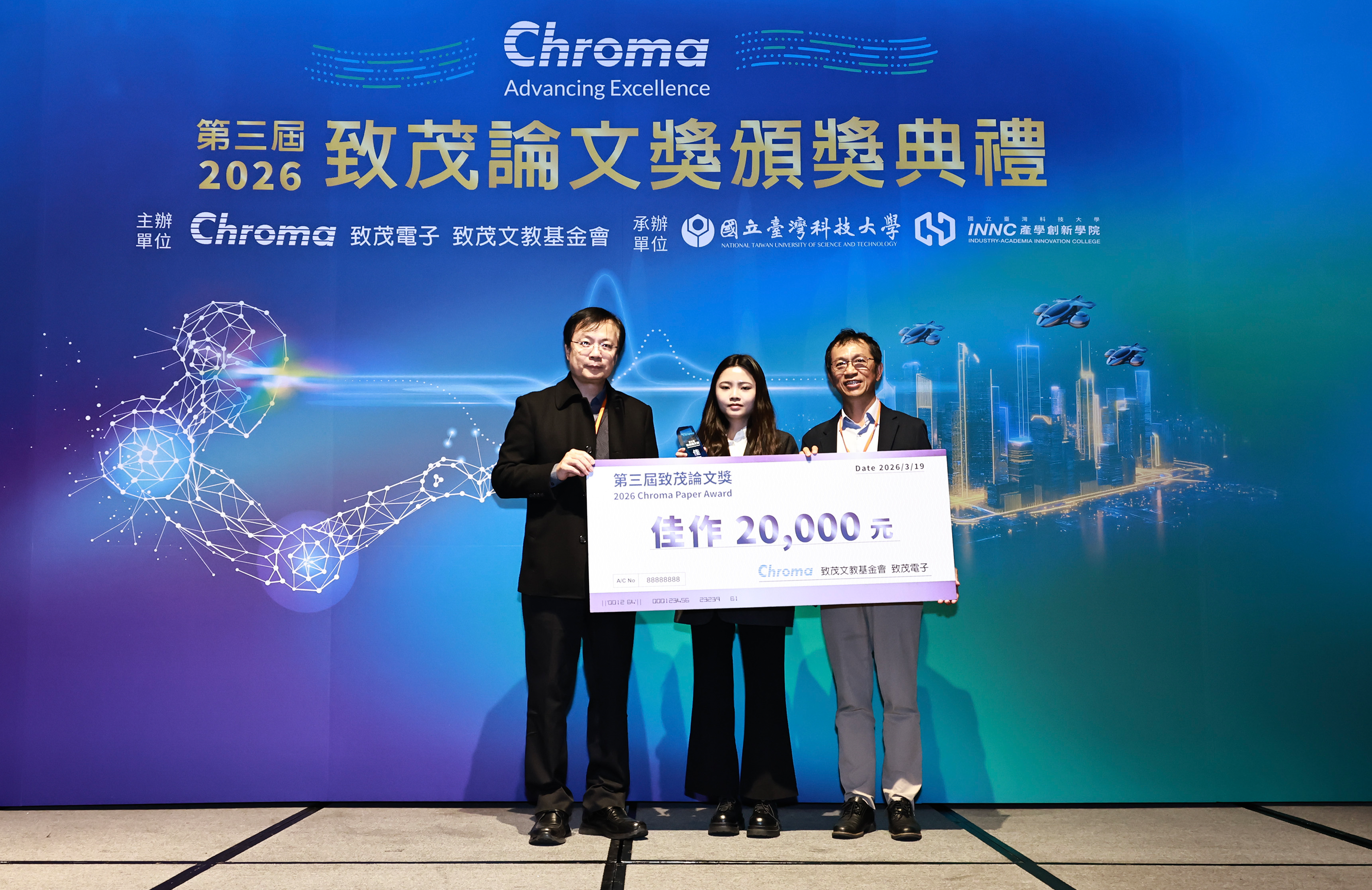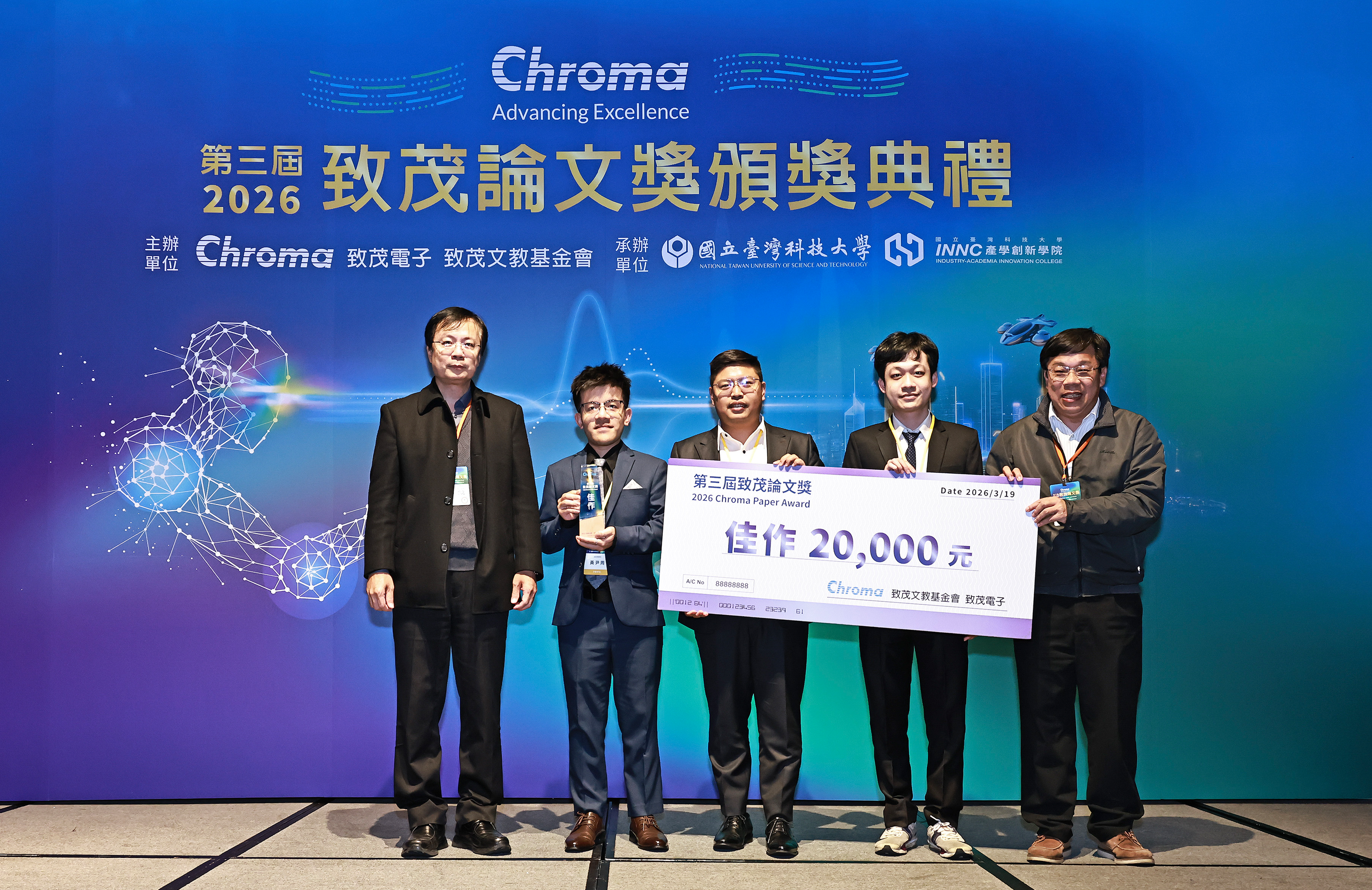 致茂電子(Chroma ATE Inc.)於3月19日舉辦第三屆「致茂論文獎」頒獎典禮,活動圓滿落幕。本屆論文獎持續深化產學合作,並與國立臺灣科技大學合作推動,透過建立與產業需求緊密連結的交流平台,促進學術研究與實務應用接軌,進一步推動科技創新與關鍵人才培育。