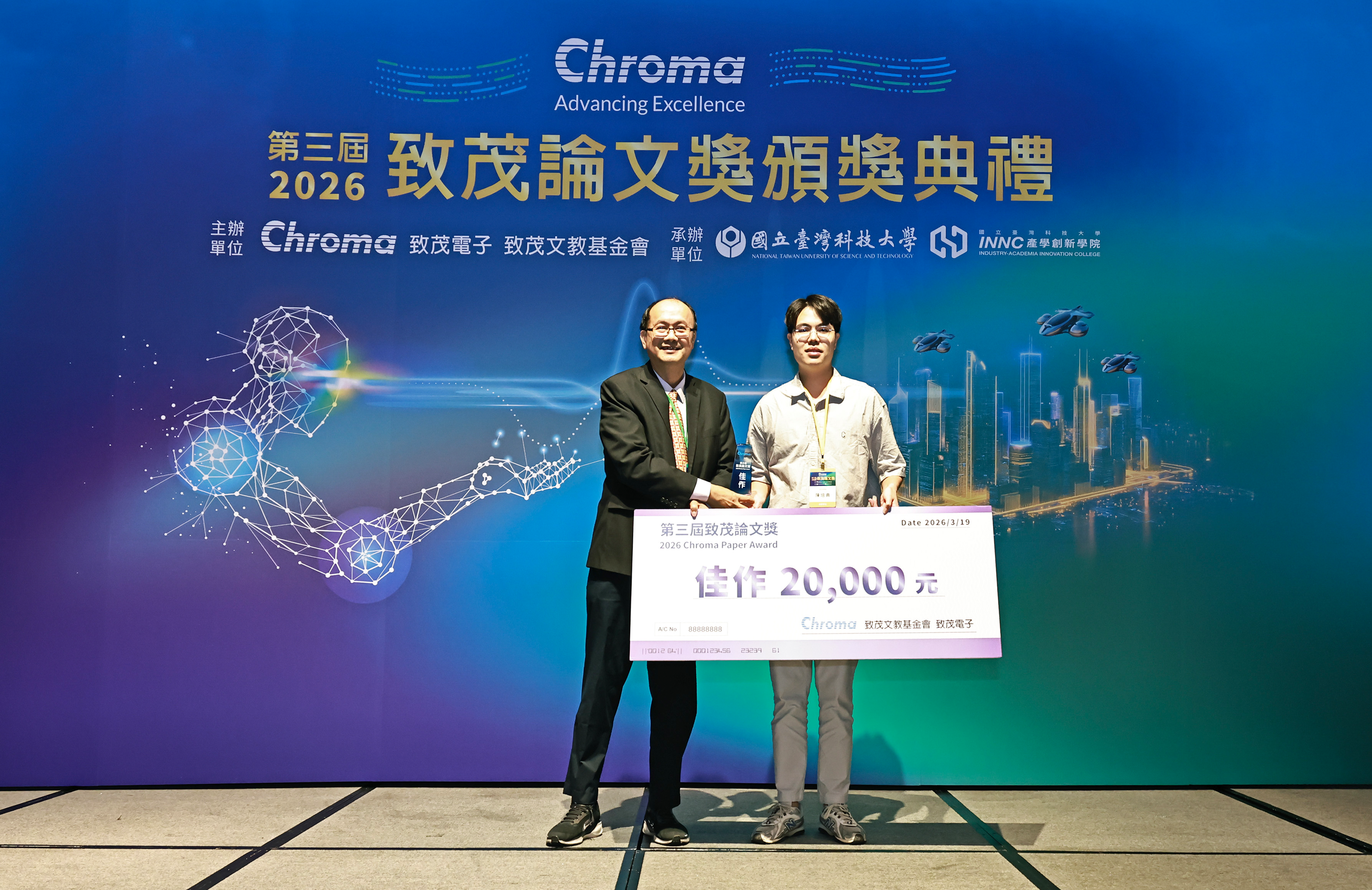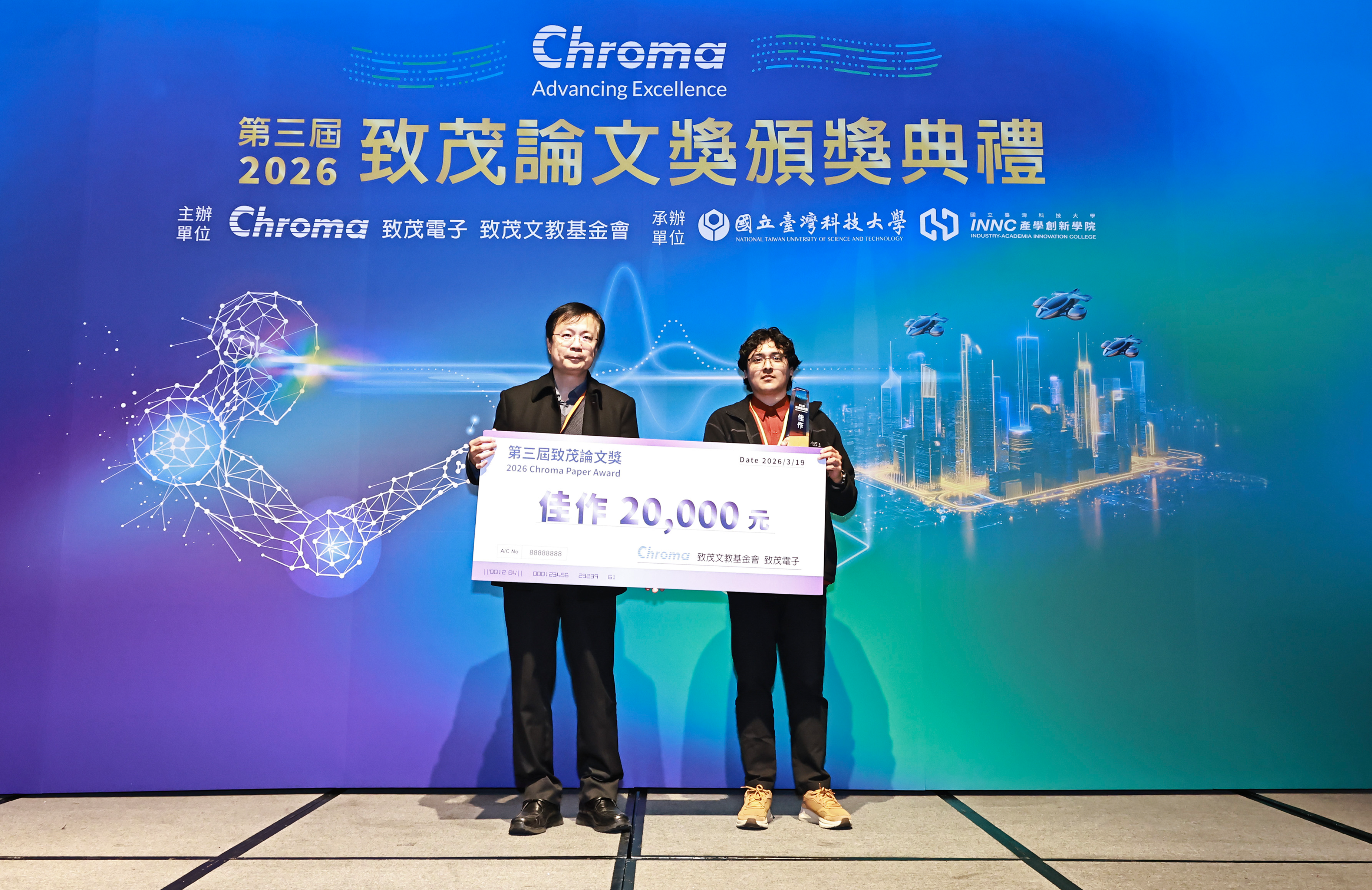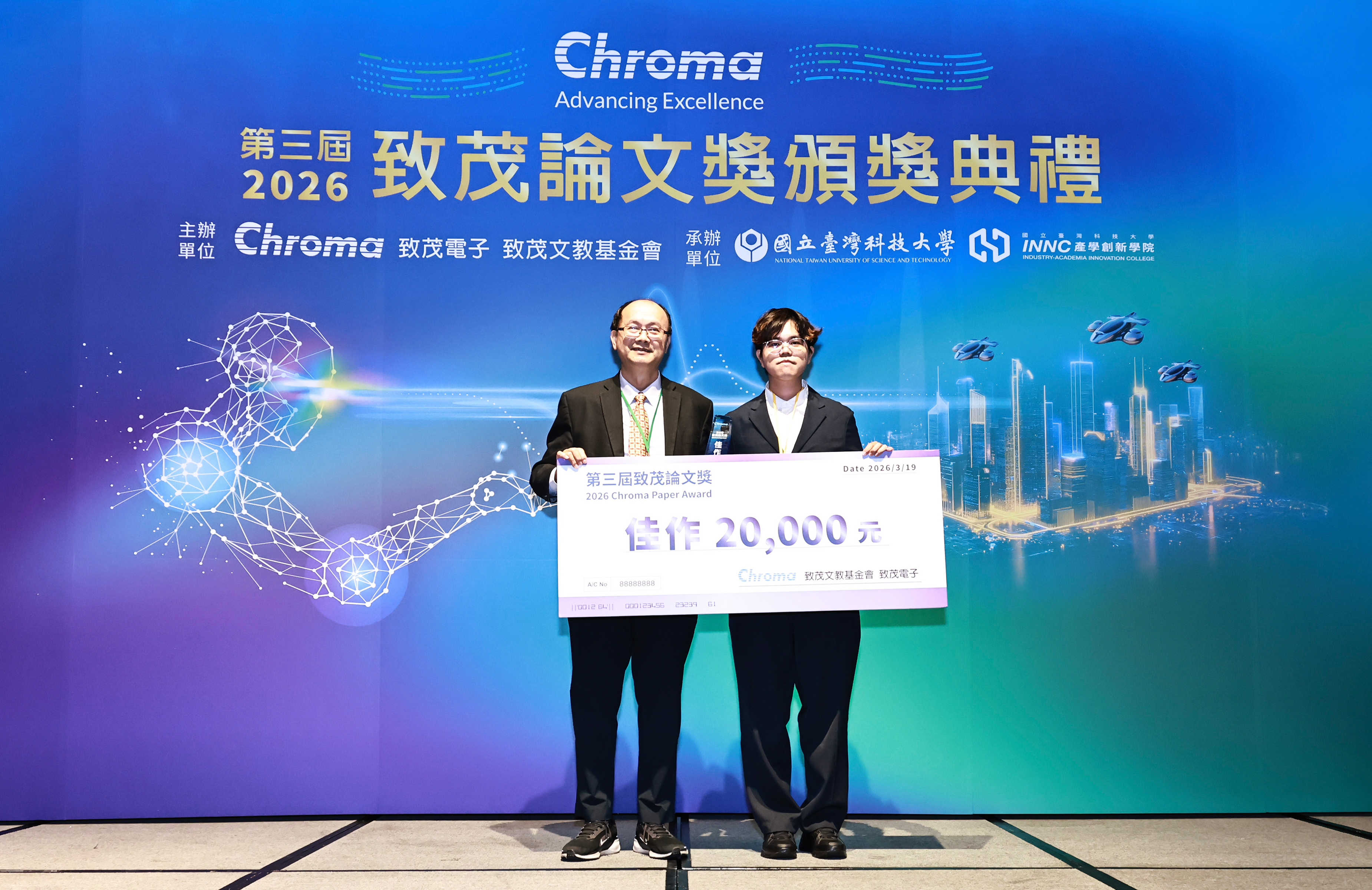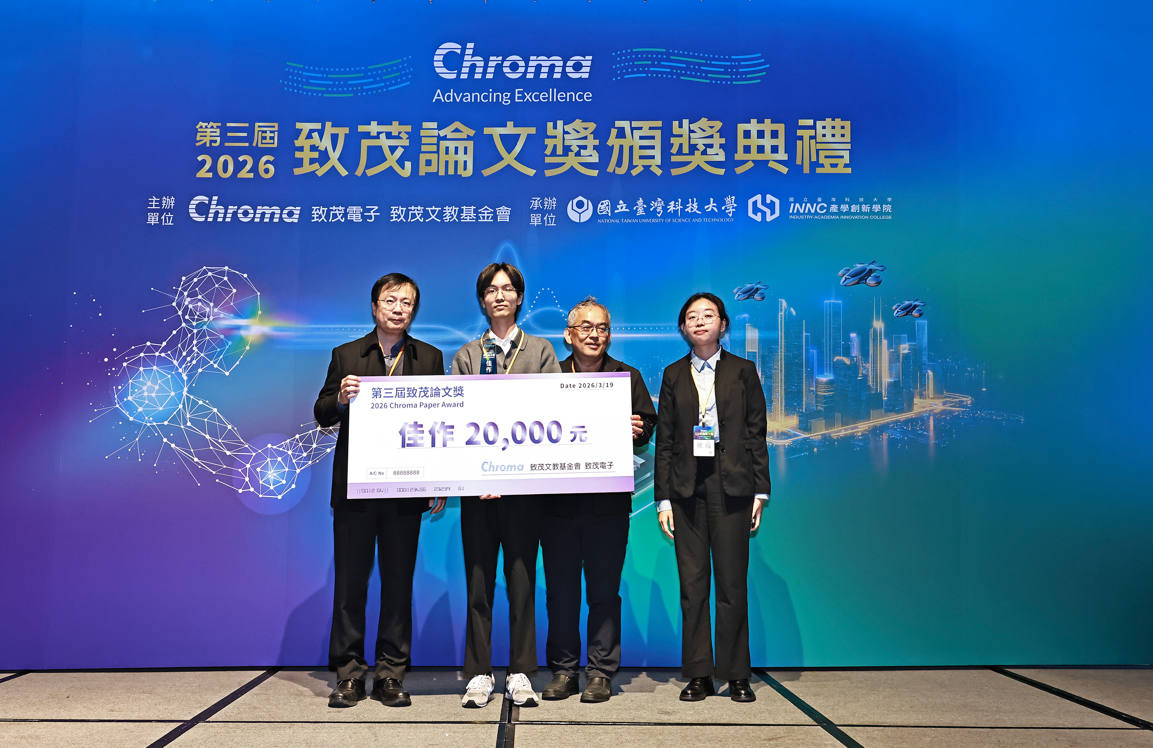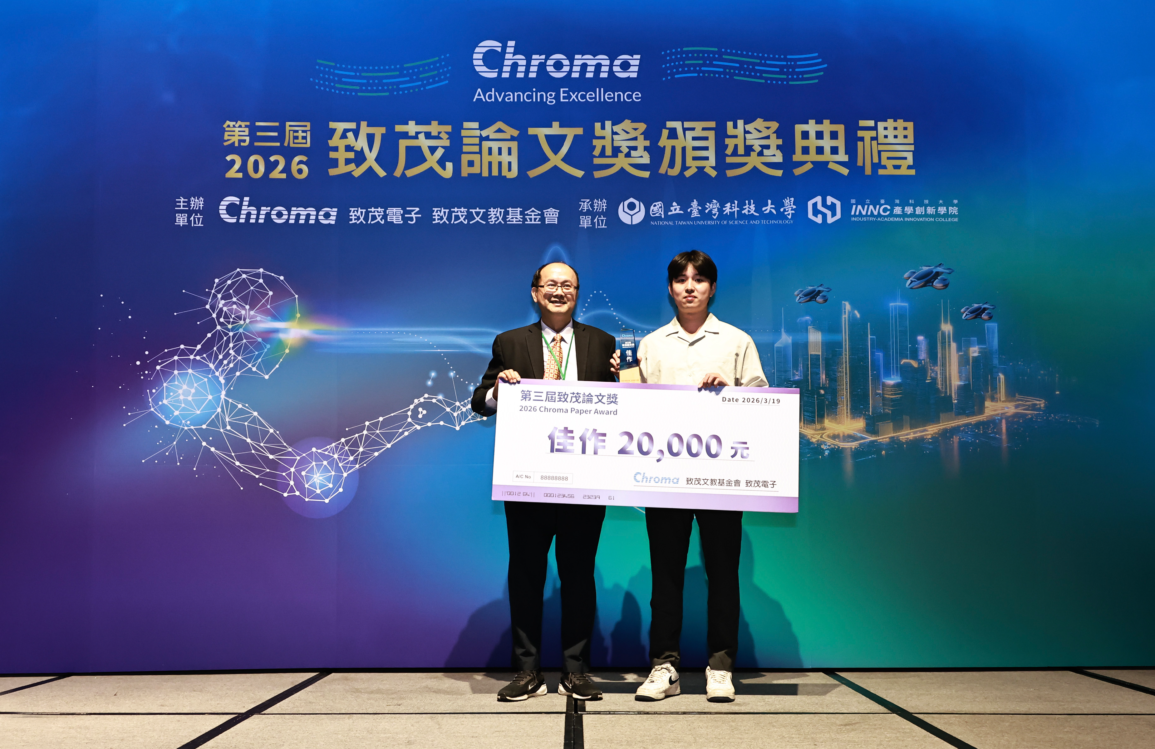 致茂電子(Chroma ATE Inc.)於3月19日舉辦第三屆「致茂論文獎」頒獎典禮,活動圓滿落幕。本屆論文獎持續深化產學合作,並與國立臺灣科技大學合作推動,透過建立與產業需求緊密連結的交流平台,促進學術研究與實務應用接軌,進一步推動科技創新與關鍵人才培育。