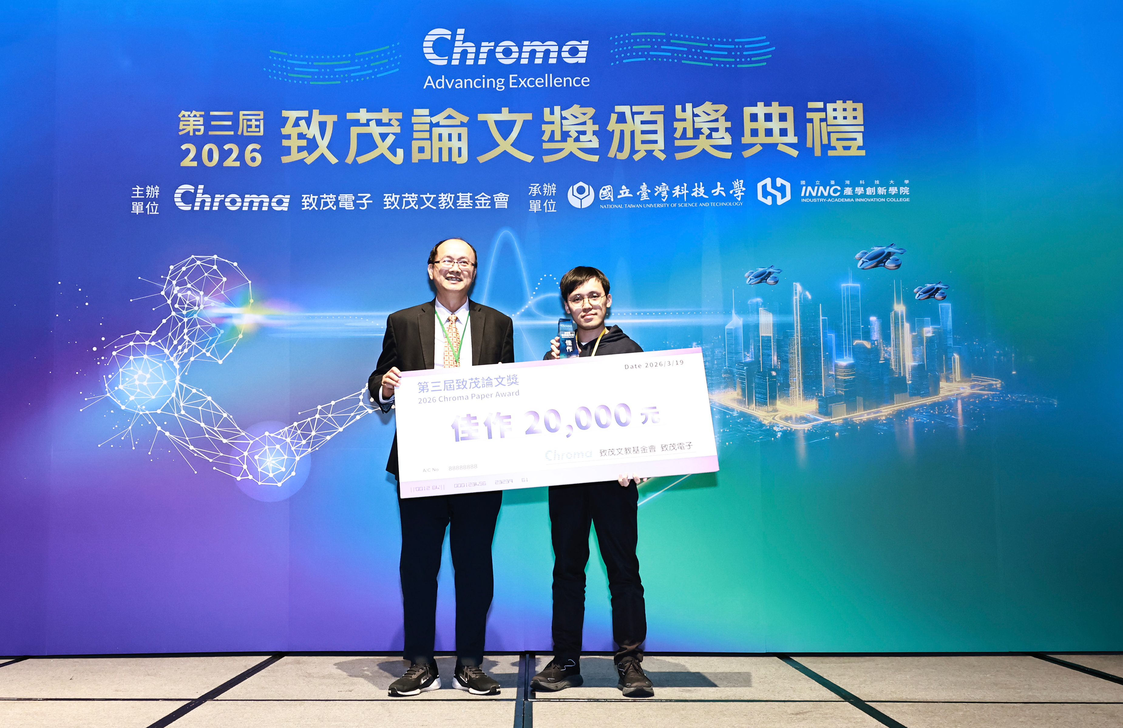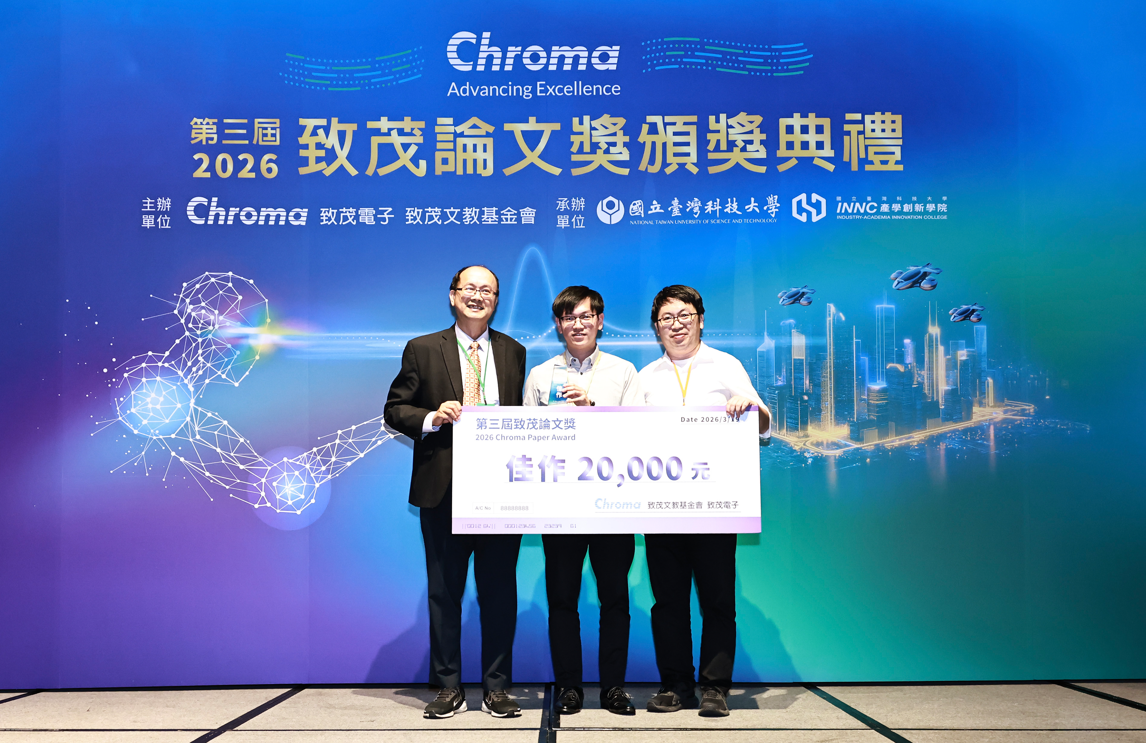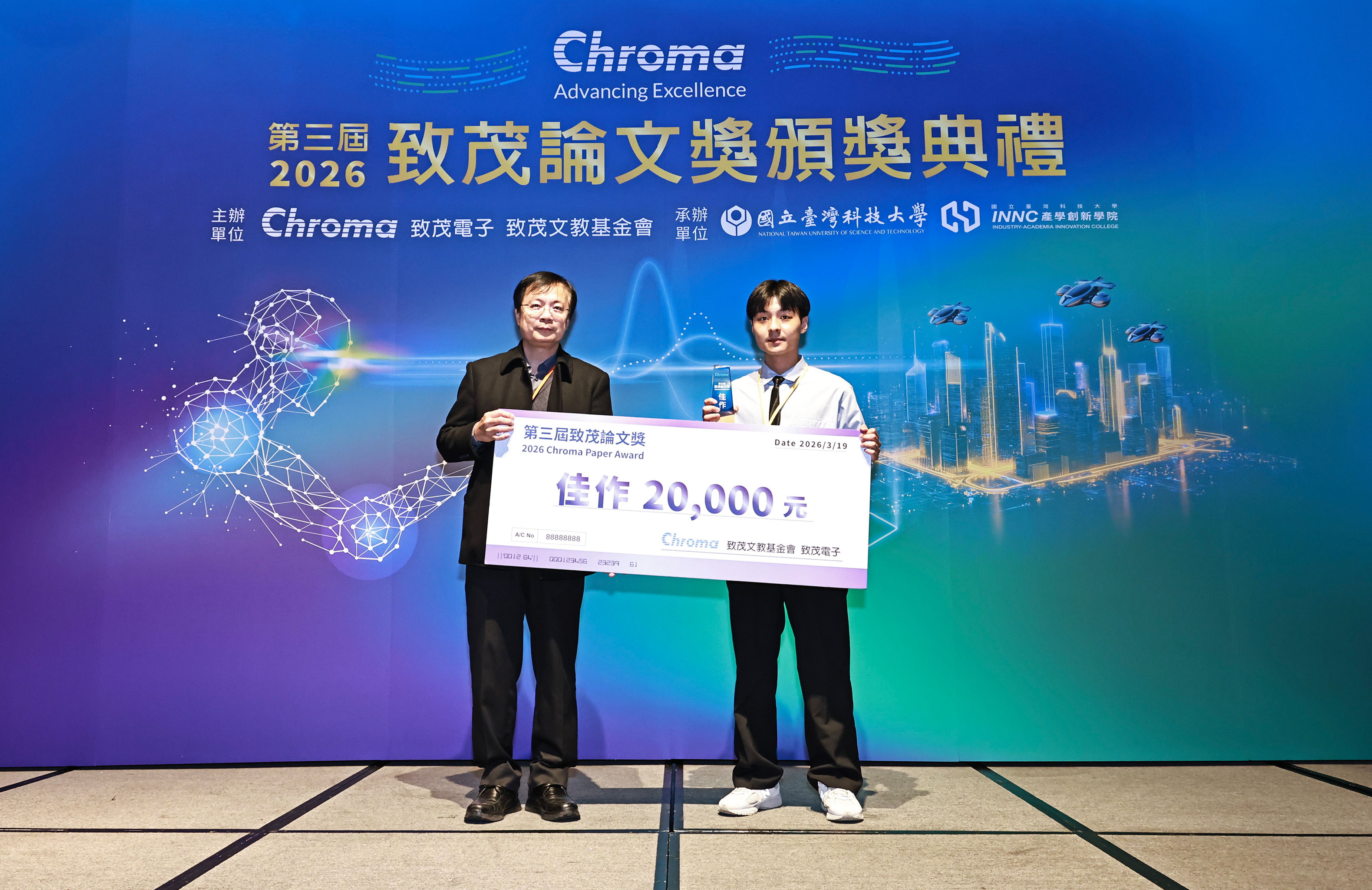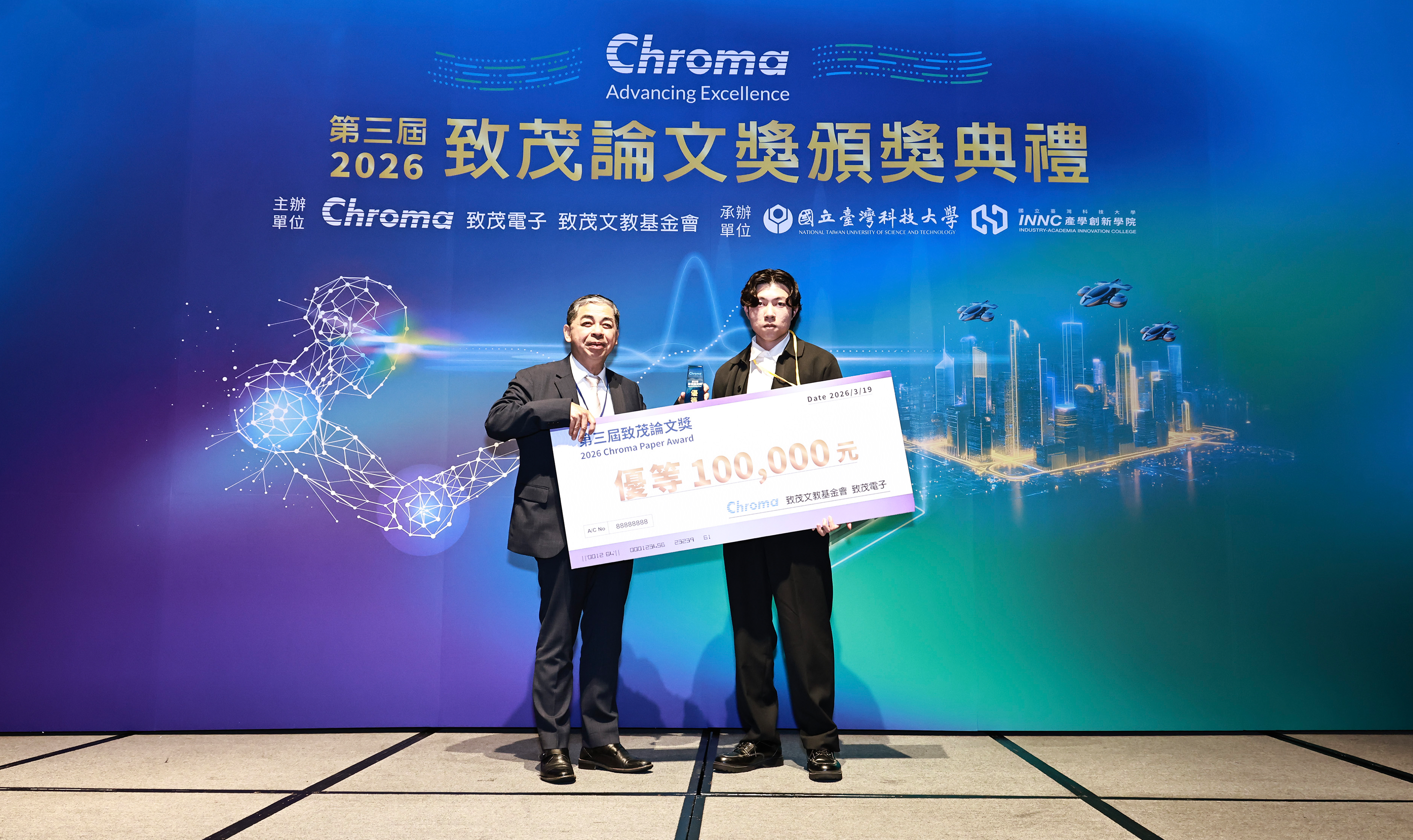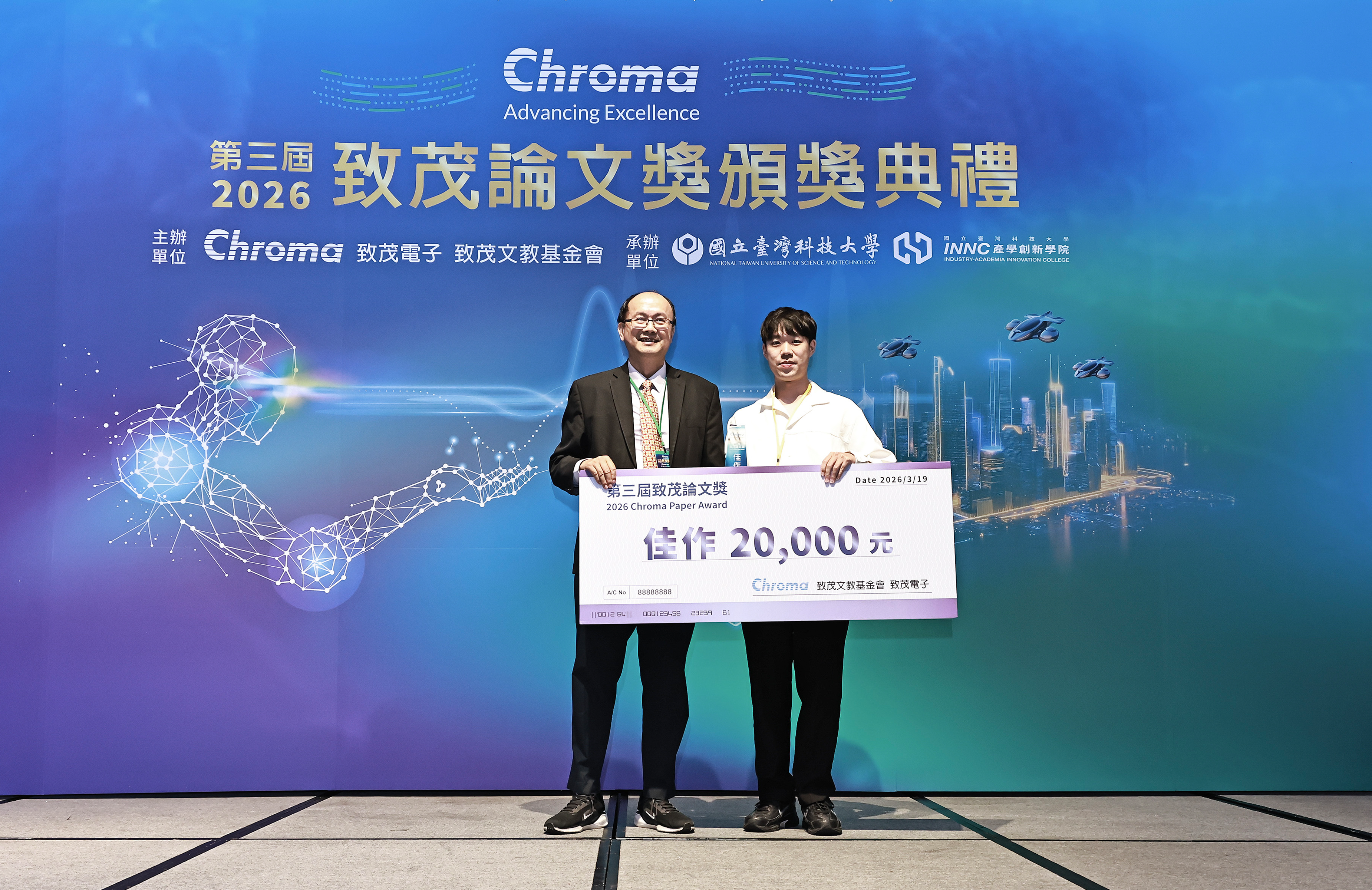 致茂電子(Chroma ATE Inc.)於3月19日舉辦第三屆「致茂論文獎」頒獎典禮,活動圓滿落幕。本屆論文獎持續深化產學合作,並與國立臺灣科技大學合作推動,透過建立與產業需求緊密連結的交流平台,促進學術研究與實務應用接軌,進一步推動科技創新與關鍵人才培育。