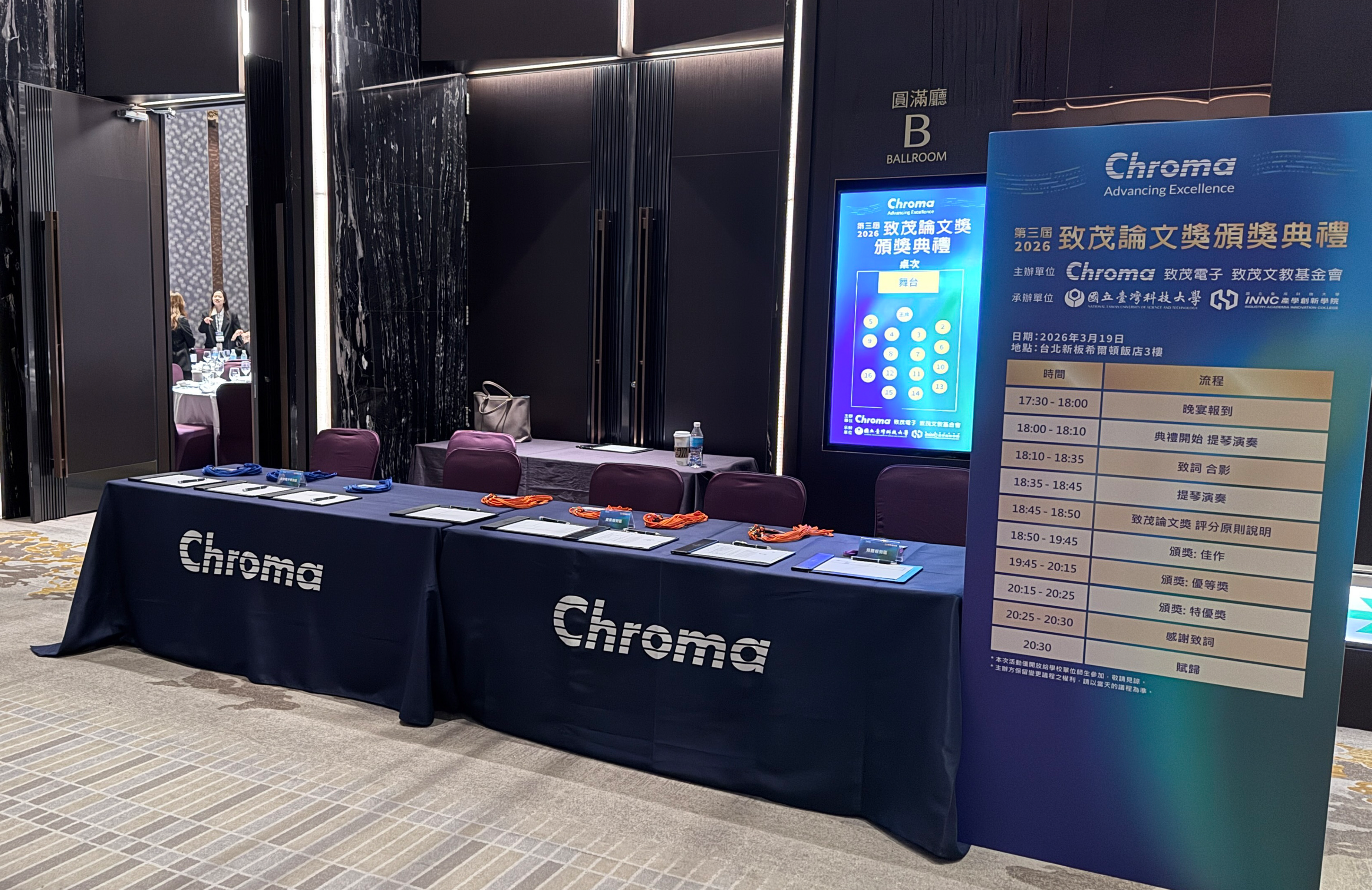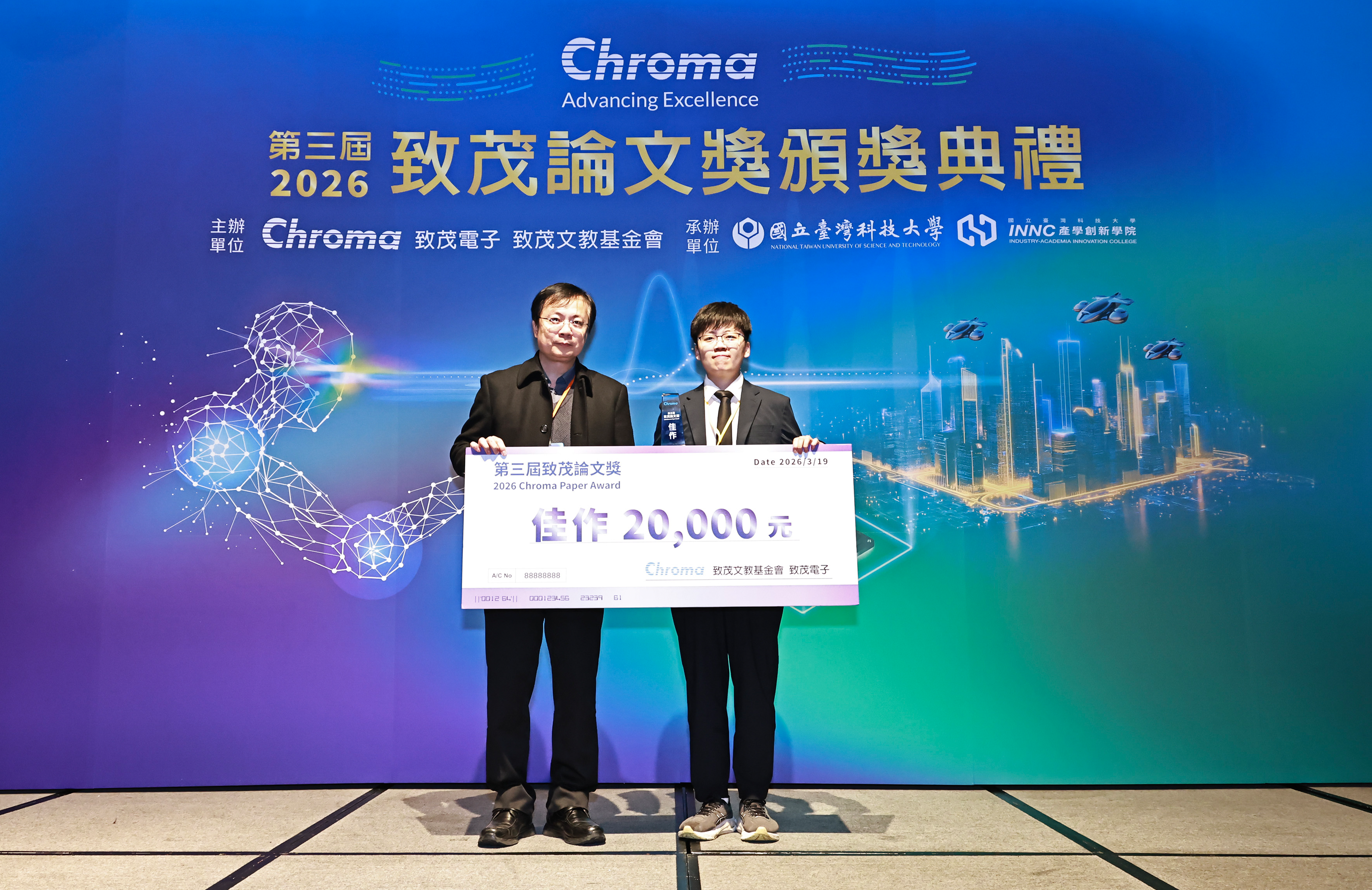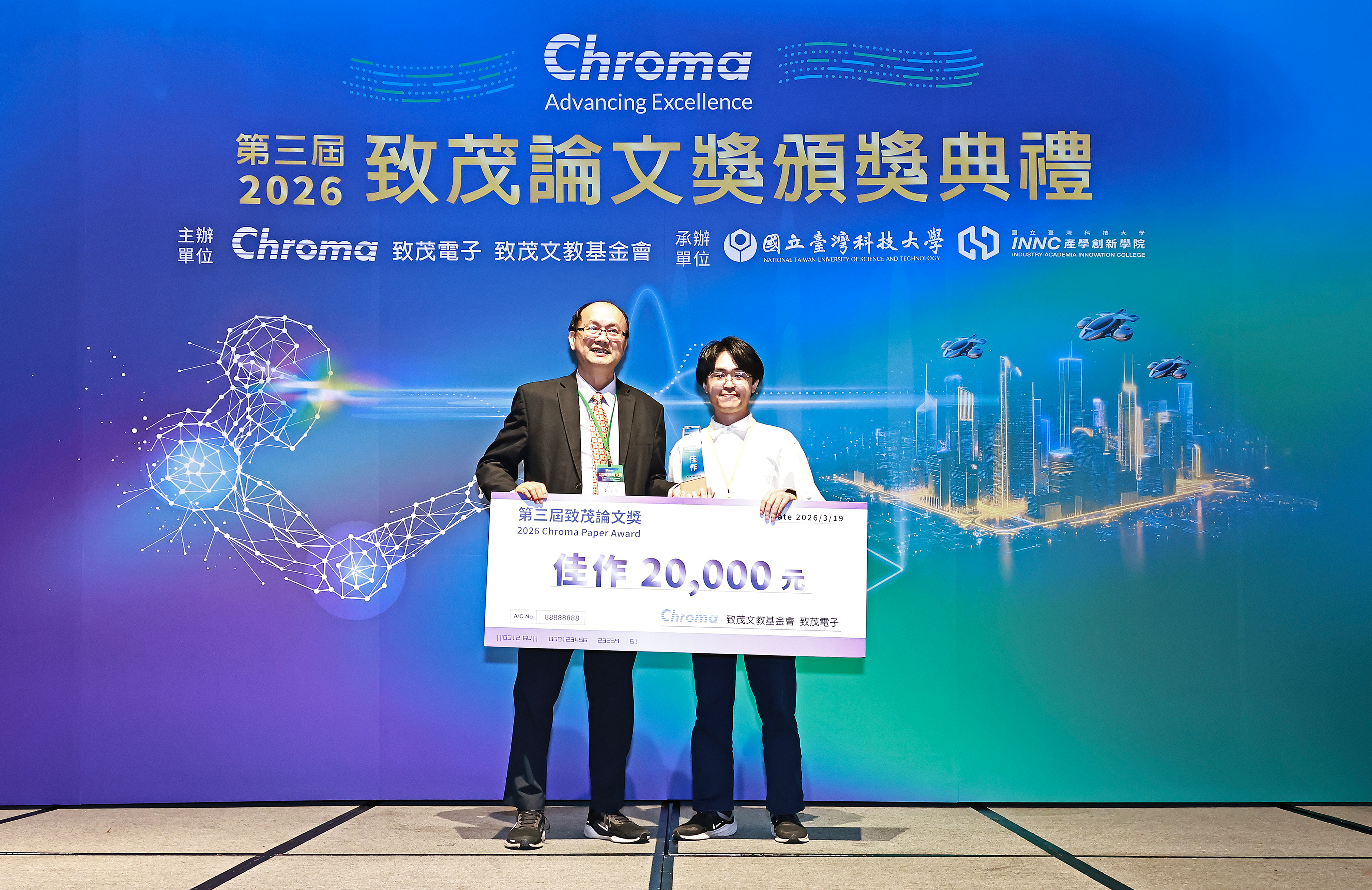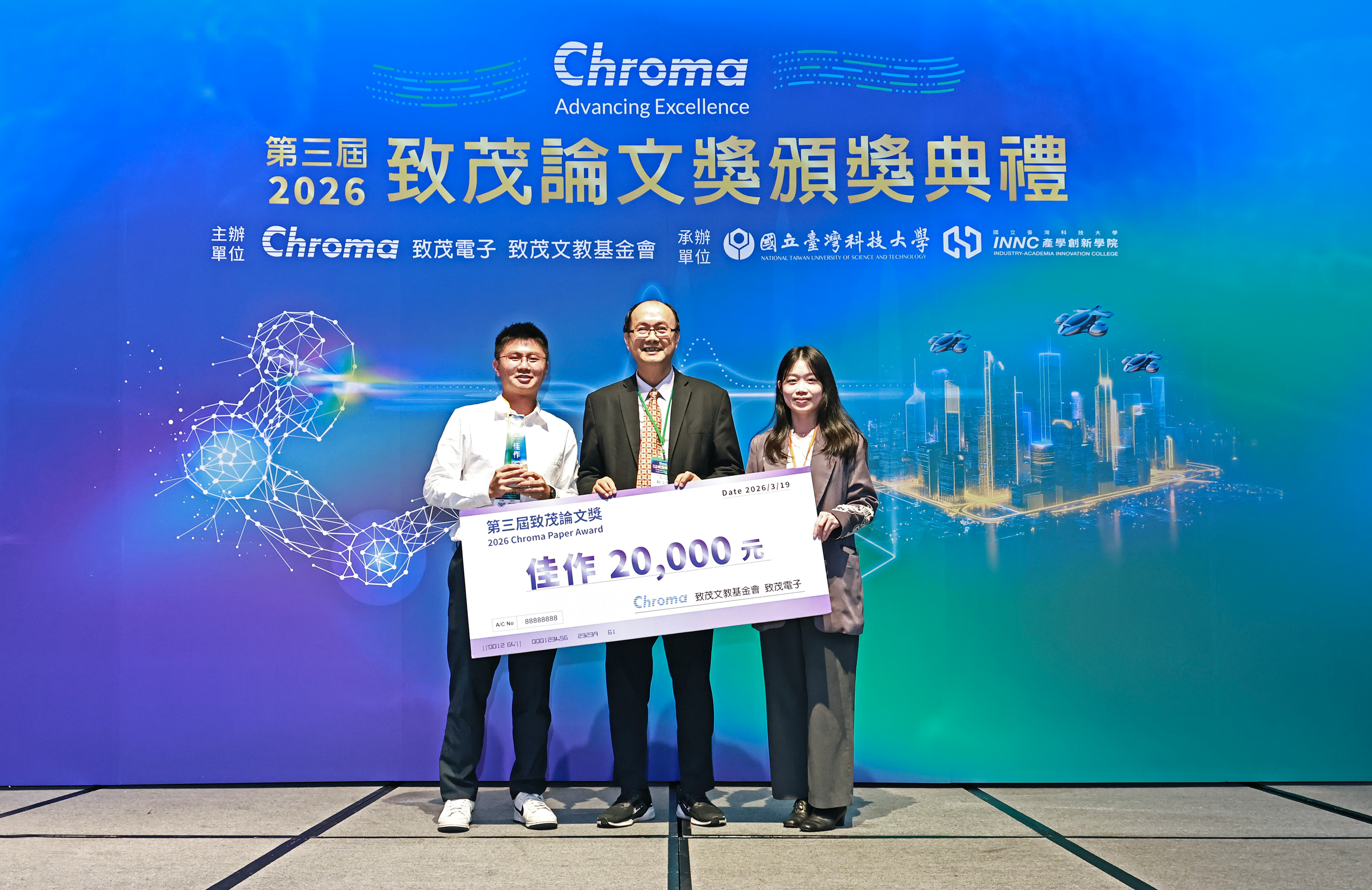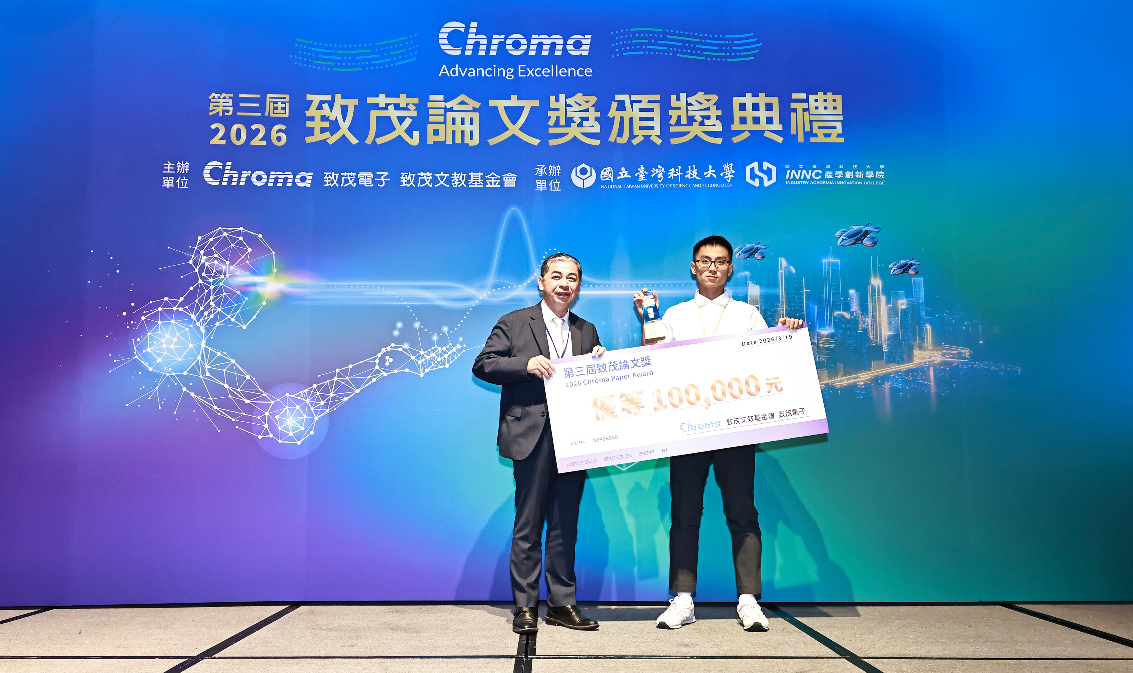 致茂電子(Chroma ATE Inc.)於3月19日舉辦第三屆「致茂論文獎」頒獎典禮,活動圓滿落幕。本屆論文獎持續深化產學合作,並與國立臺灣科技大學合作推動,透過建立與產業需求緊密連結的交流平台,促進學術研究與實務應用接軌,進一步推動科技創新與關鍵人才培育。